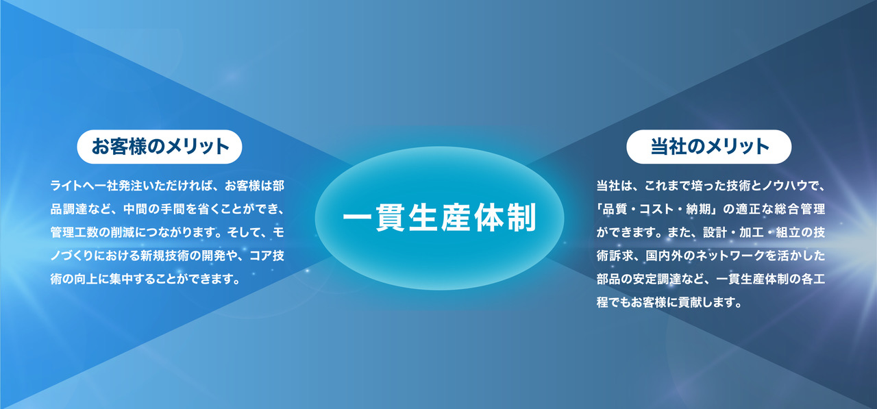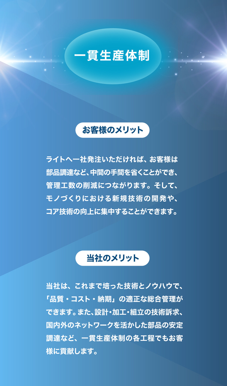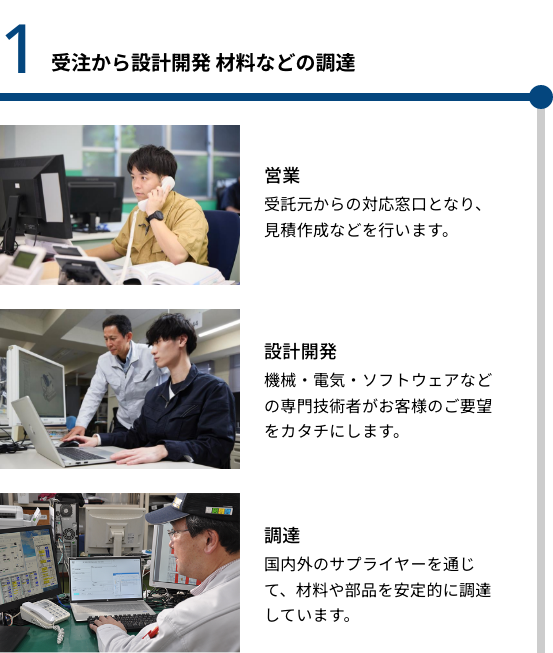 当社は、お客様からの受注後、納品までのさまざまな工程を自社で行うことができる一貫生産体制を実践しています。