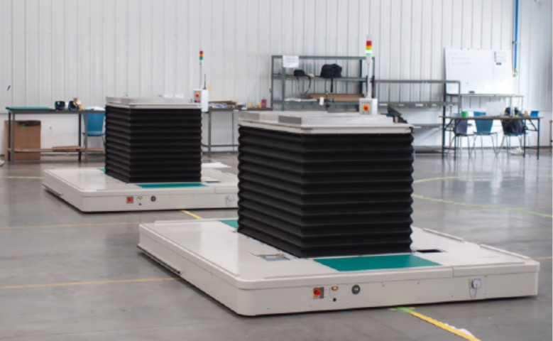 当社は、生産ラインの効率化を実現するAGV生産システムを開発しています。AGVがペースメーカーとなり、工程ごとの作業時間に合わせて低速走行します。リフター機能、自動搬送機能、複数台AGVのシステム制御を一体化した製品で、お客様のご要望に合わせてオーダーメイドが可能です。